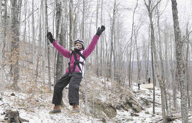 NEWRY — Frozen waterfalls, whispering brooks, and the distant hum of snow guns outside a quiet grove. These are some of the things that make zip line rides in winter so unique.