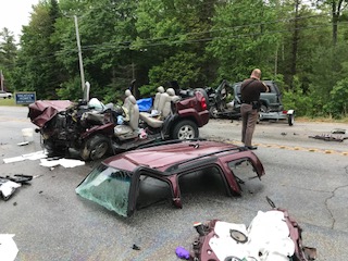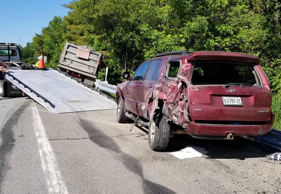 The woman had stopped in the breakdown lane of an exit off Interstate 95 in Orono when the truck carrying asphalt crashed into the back of her vehicle.