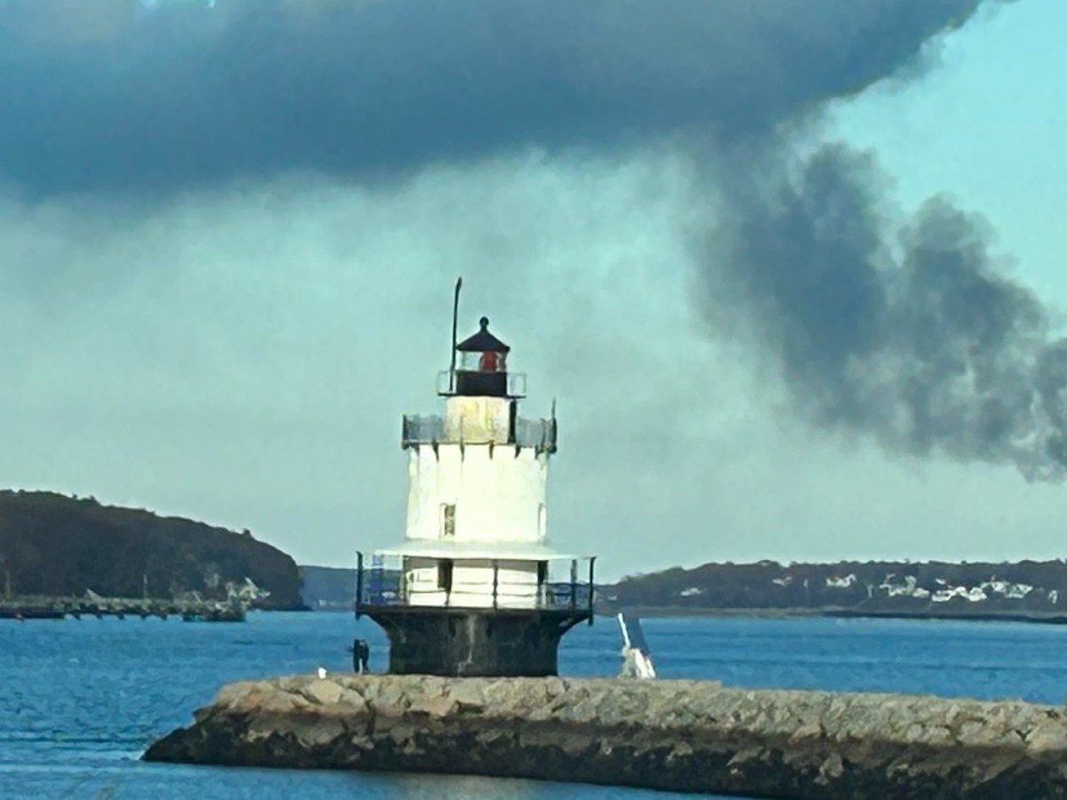 Black smoke from the fire could be seen from nearby Boothbay Harbor.