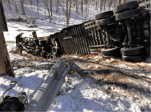 The truck was delivering bottled water from Poland Spring’s plant in Kingfield, police said.