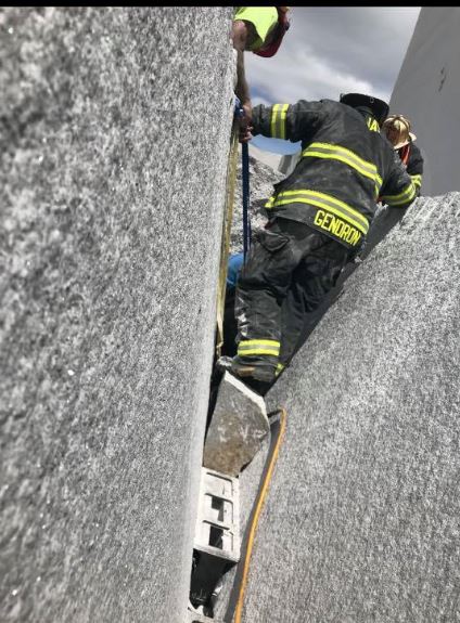 A Polycor employee was splitting a piece of granite and he fell between the pieces and one rolled onto his feet.