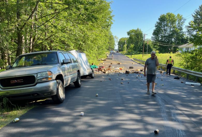 Traffic was rerouted for about 75 minutes after Mark Bogue, 73, of Farmington lost control of an SUV while hauling a trailer.