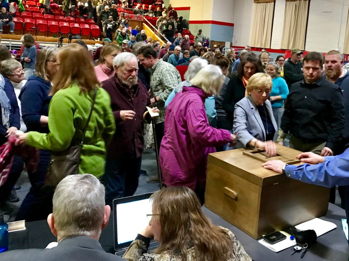 Voters heard from Mills on why she supports the controversial Central Maine Power transmission line, but residents at town meeting voted 262-102 to oppose the New England Clean Energy Connect project.