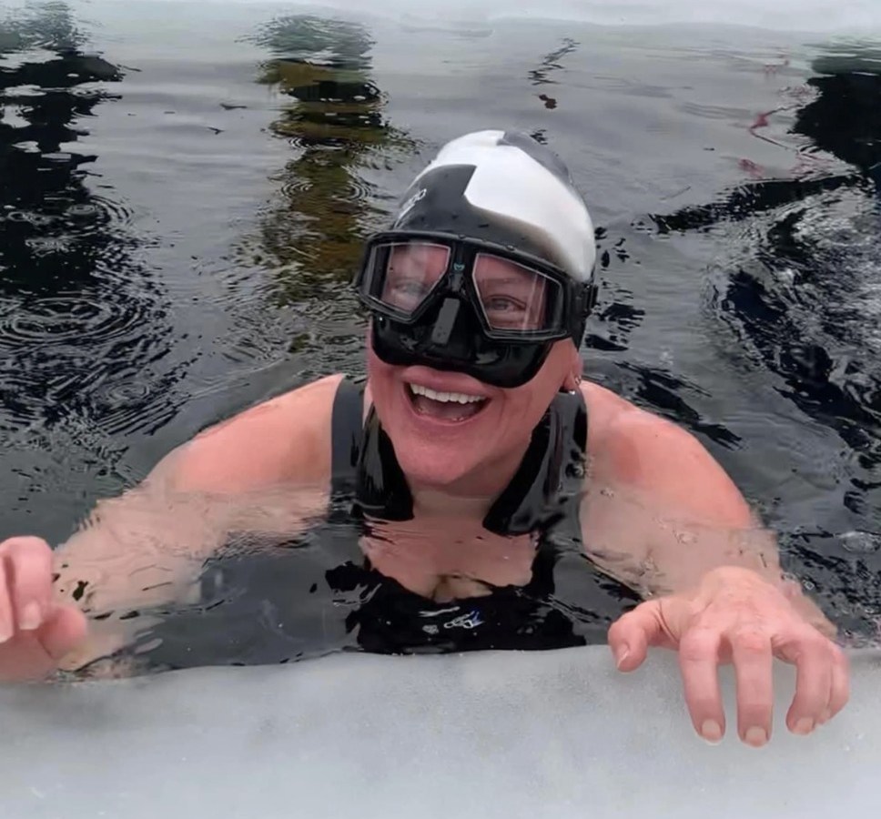 Mandy Sumner, of North Berwick, braved 35-degree waters to record the longest bi-fin swim under ice by a woman in a swimsuit.
