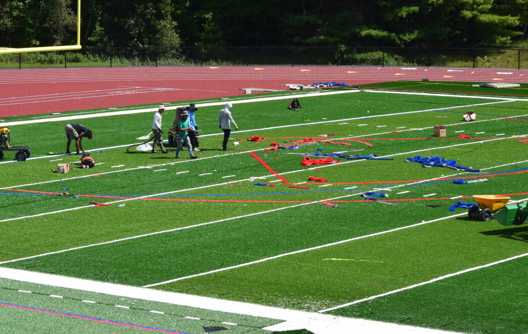 Installation work on the new turf field at Mt. Ararat High School nears completion