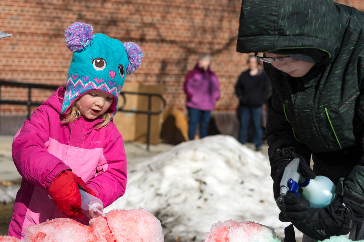 Mother-daughter team Amanda Bolduc and Cathy Thompson show eventgoers how to make sculptures out of snow.