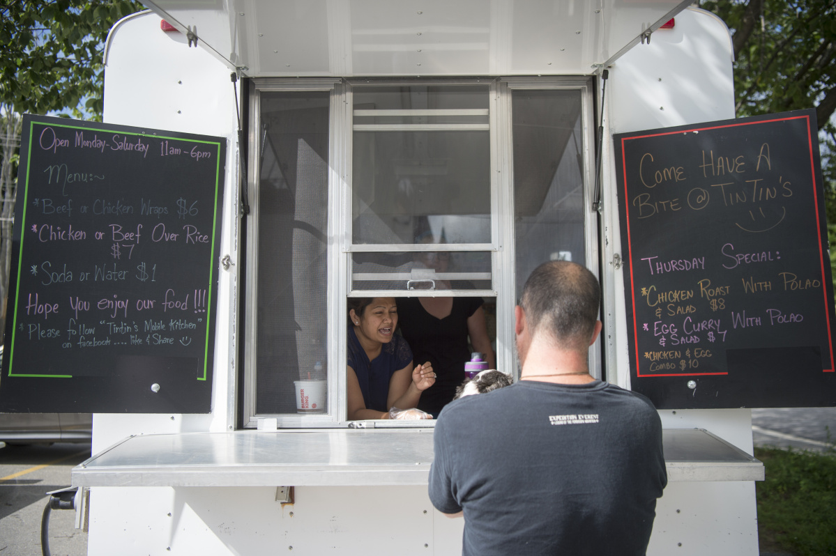 The Khan family is serving up Southeast Asian, Middle Eastern fusion rice and wrap dishes from a silver cart in the parking lot of Joseph’s Market.