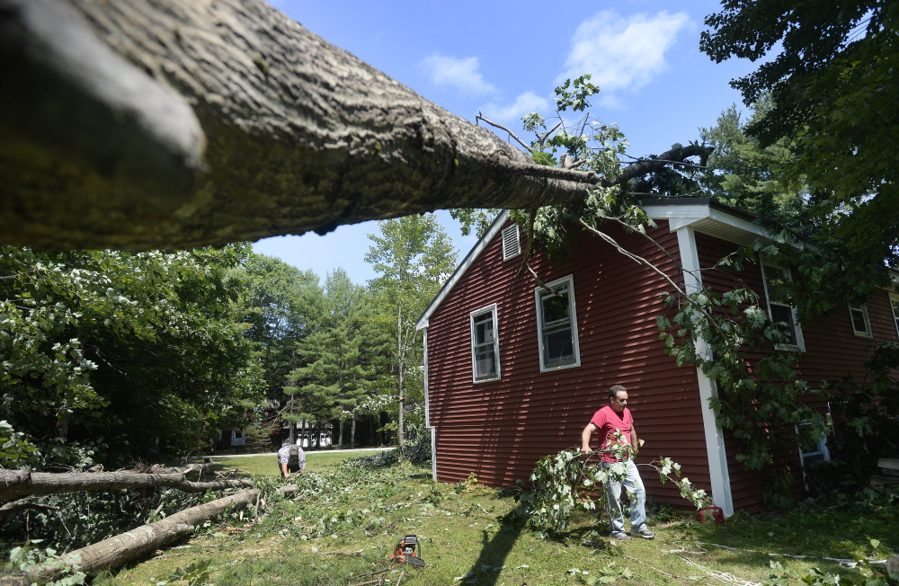 Sean Greeley, of Walpole, Massachusetts, felt the force of one of Monday’s storms that included a confirmed tornado in Limington.