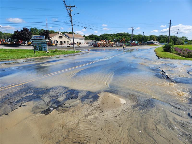 While the water main was expected to be repaired and water service restored Friday, the Kennebec Water District reported that Armory Road was severely damaged and is scheduled to be repaired next week.