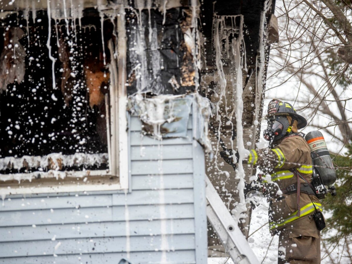 Destructive house fire in Winslow sends person who jumped from 2nd floor to hospital