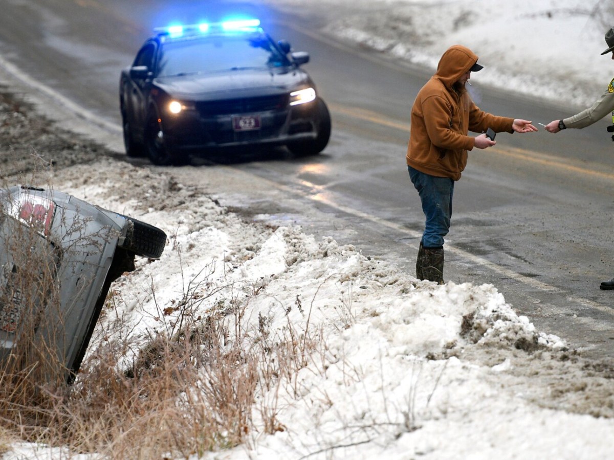 The woman’s injuries were not believed to be life-threatening. Police said slush on Oak Hill Drive on Thursday caused a car to slide through a stop sign, triggering the collision.