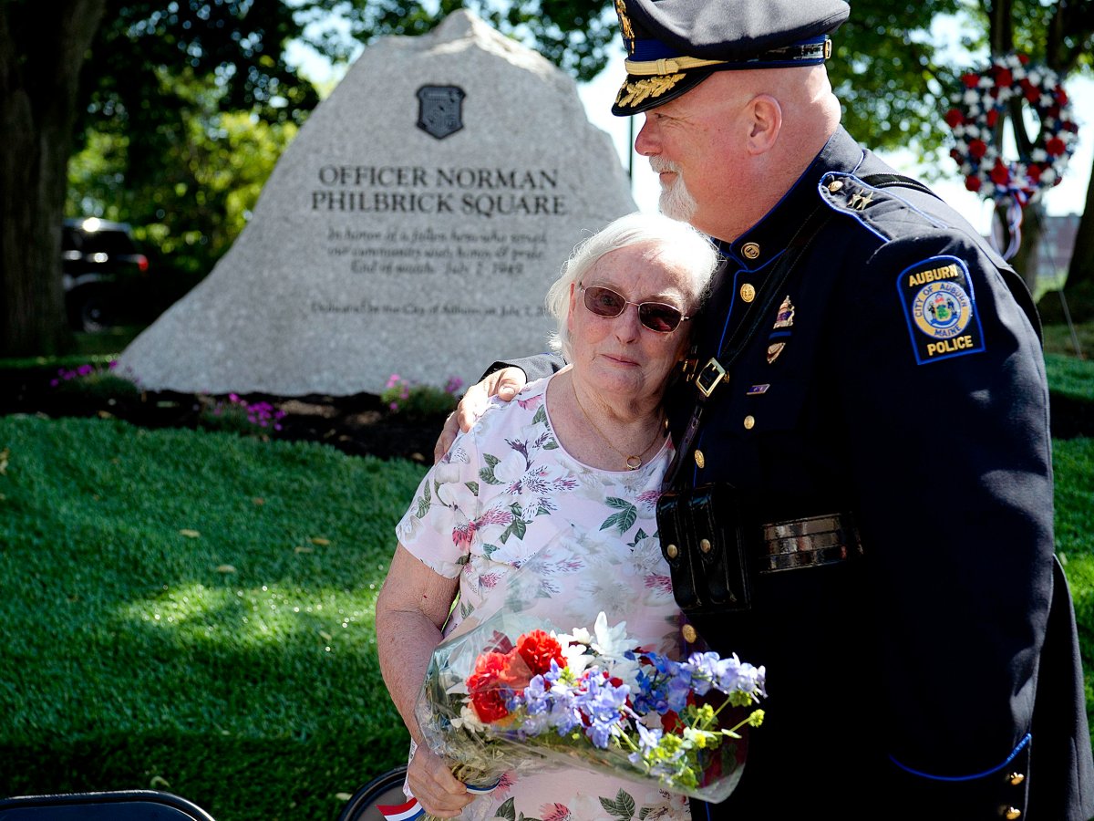 The city dedicated a memorial Sunday morning to Norman Philbrick at the intersection of Court and Main streets.