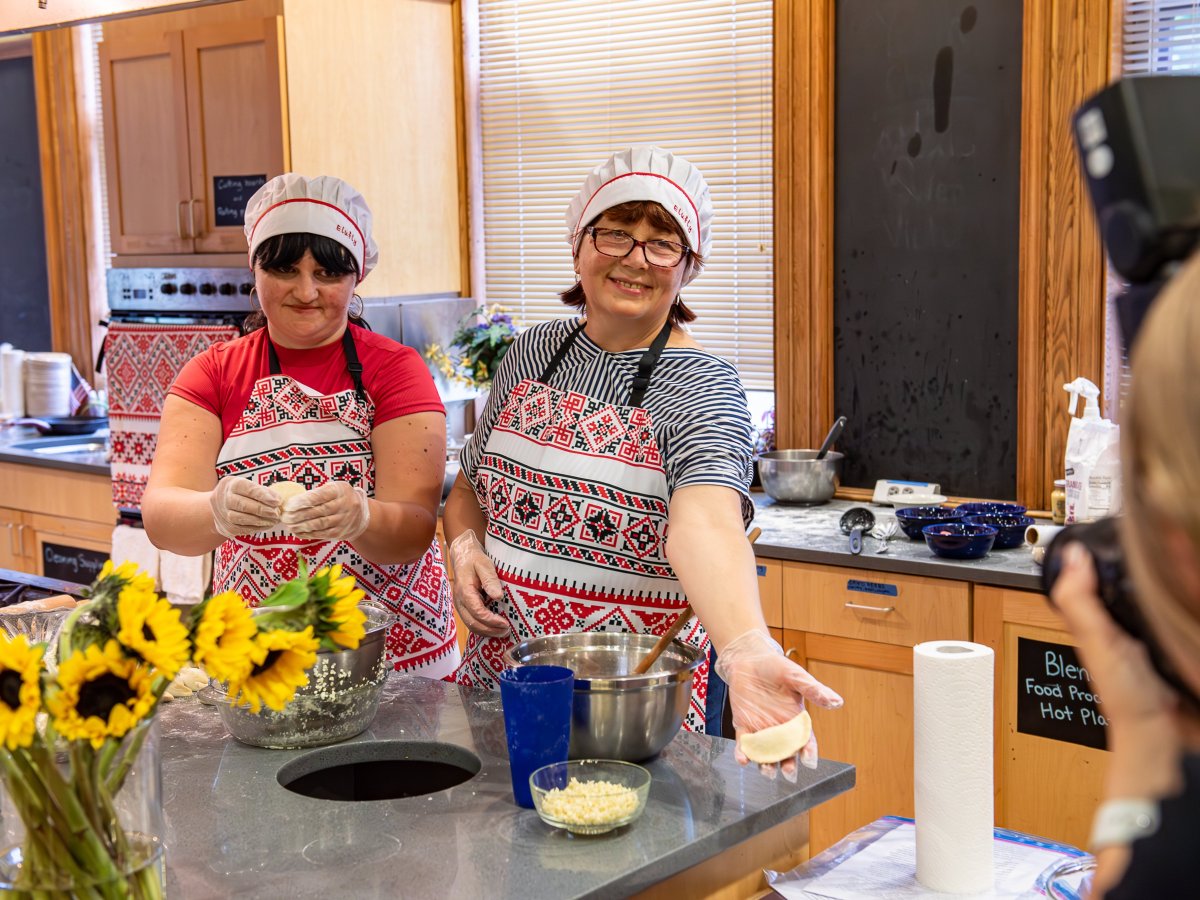 Three Ukrainian women gathered Wednesday to share their favorite dishes with a new community in Lewiston.