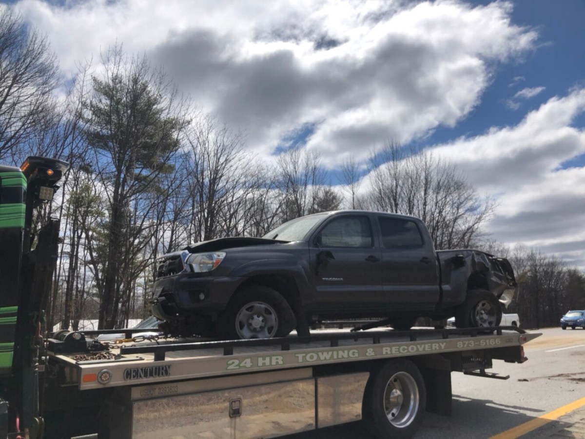 Pickup truck damaged in accident with tractor-trailer on I-95 in Waterville