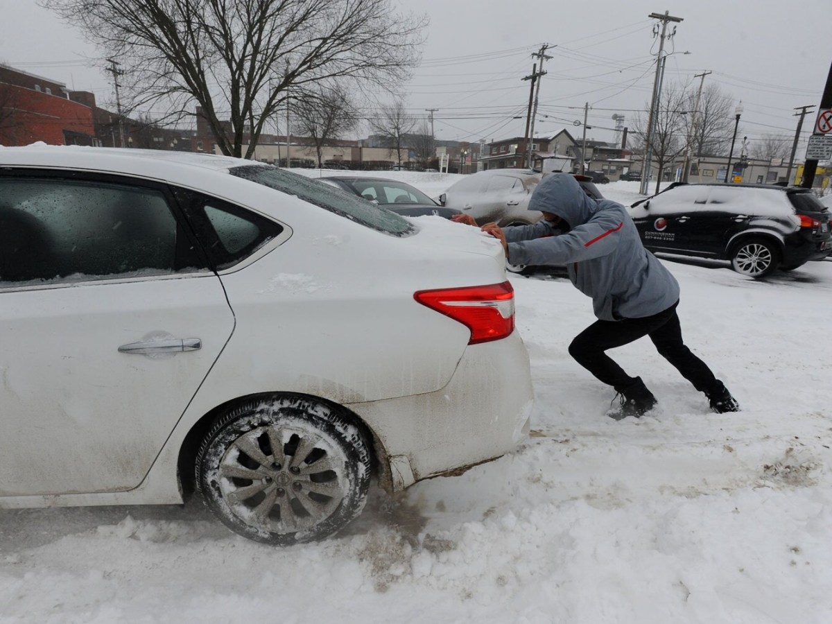 Snow started Monday evening and was expected to continue into Tuesday evening, with wind gusts and some outages reported as the storm blew into the region.