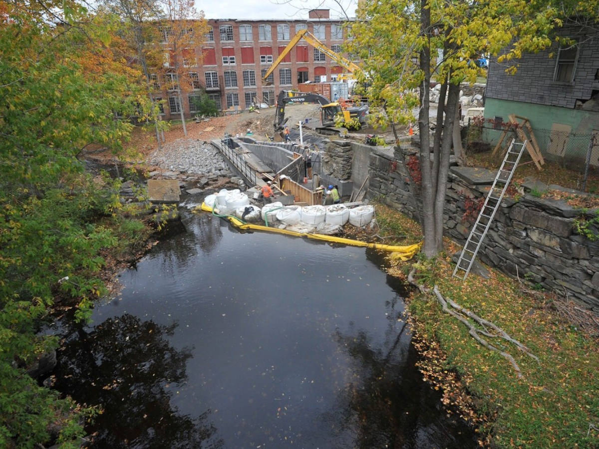 Fishway is almost complete at the Box Mill Dam in Vassalboro, bringing connection between Outlet Stream and Sebasticook River closer.