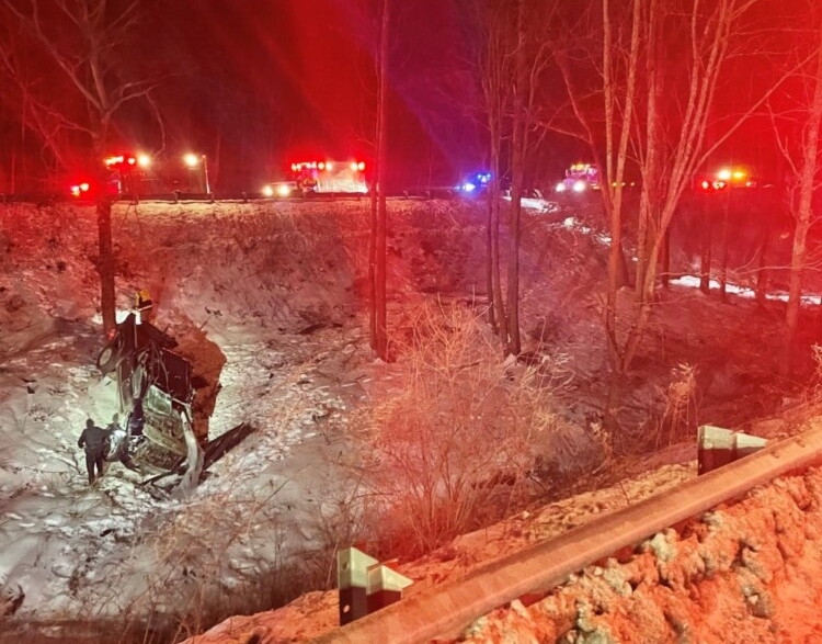 Joseph Munster, 41, of Vassalboro, is expected to recover after his pickup left the highway and toppled down a ravine Friday.