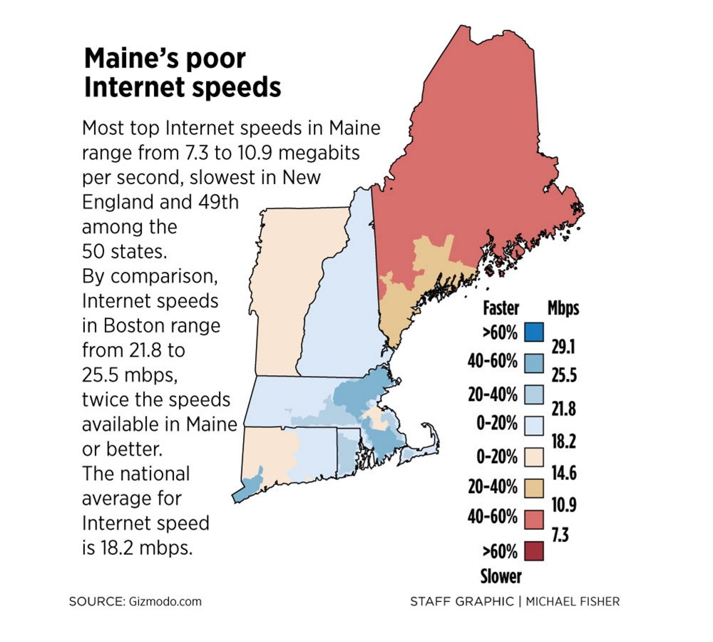 Maine broadband service ranks 49th out of 50 states