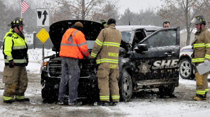 Schools and courthouses closed Tuesday as a storm brought slippery road conditions that, among other things, contributed to a crash involving a Kennebec County Sheriff’s deputy.
