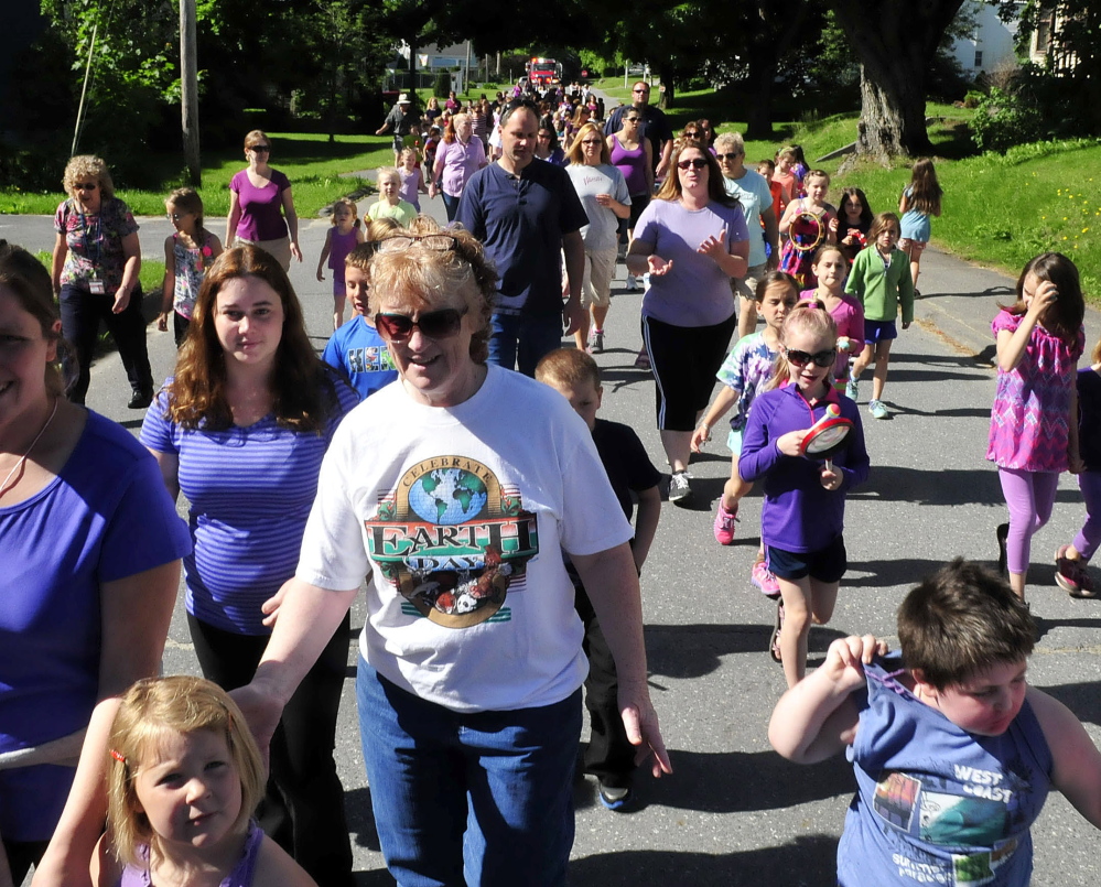 Adriana and Blake Pettengill, who were born with cystic fibrosis, led about 350 people in a parade at Atwood Primary School to teach children about the disease.
