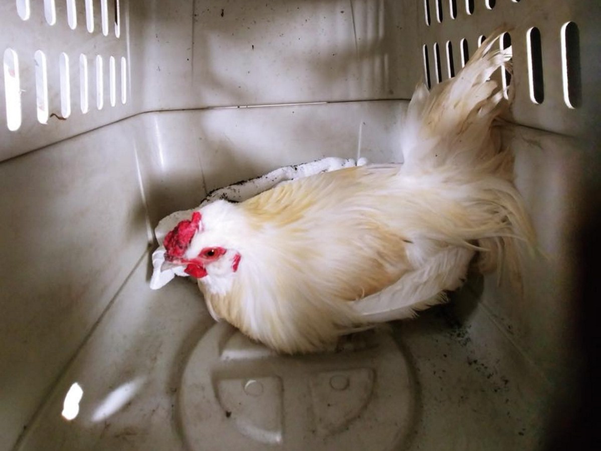Officers responded to the parking lot of the Olive Garden off Civic Center Drive Sunday on a complaint of a wayward chicken.