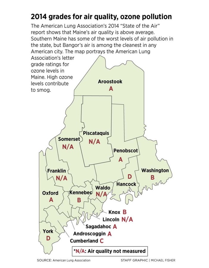 Bangor’s air quality is among the nation’s best, says the group’s pollution report. Not so for Portland.