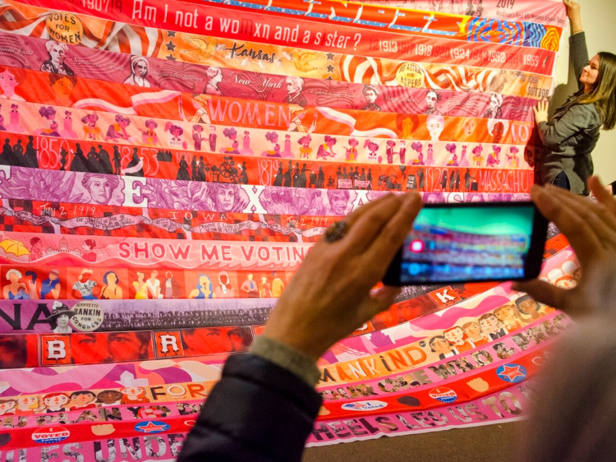 The 36-state project adds a stripe representing each state in the order that it ratified the 19th amendment, which gave women the right to vote a century ago.