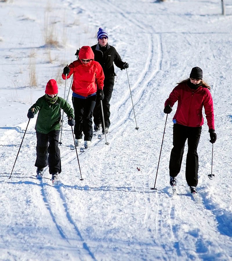 Cross country skiers curve around a bend in the trail on Tuesday at the Viles Arboretum in Augusta. There are several miles of groomed ski trails at the arboretum, which is located at 153 Hospital St.