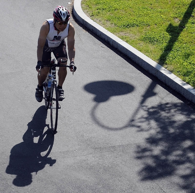 An early morning cyclist heads out of Waterfront Park in Gardiner on a warm, sunny Sunday.