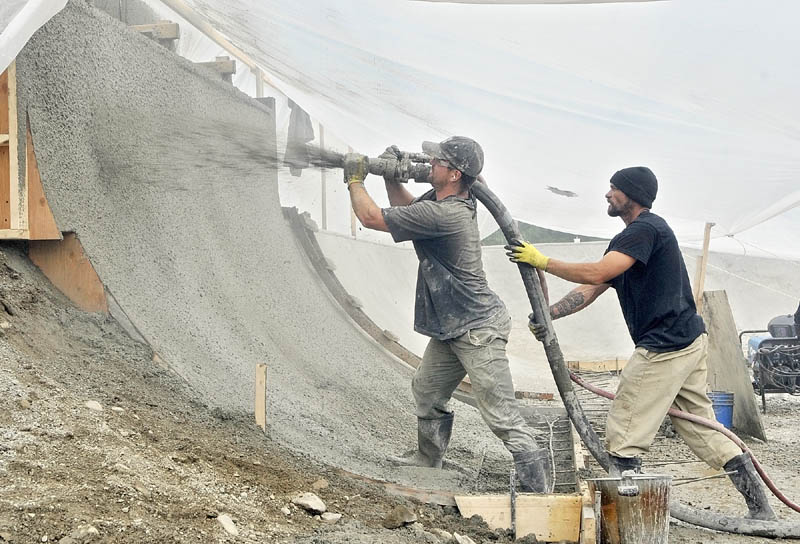 Quentin Sprague, left, and Jackman Wood spray concrete from a hose onto the curved wall in the new addition to the Augusta Skate Park on Wednesday morning in Augusta. The men were part of the crew from Who Skates, the Kennebunkport based company, hired to build the approximately 60-by-70 foot addition to the park. The […]