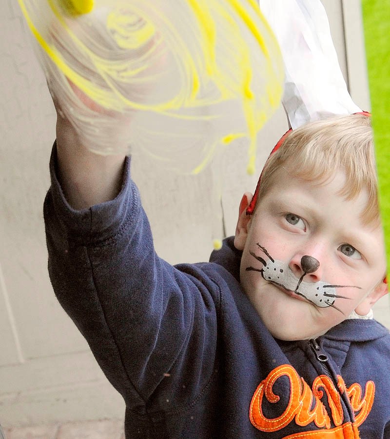 Liam Skehan, 6 of Gardiner, paints a window at Lisa’s Legit Burritos on Saturday morning in downtown Gardiner. In addition to the window painting at several downtown businesses, there was a scavenger hunt in which children could find, count and report the number of Easter eggs in storefront displays.