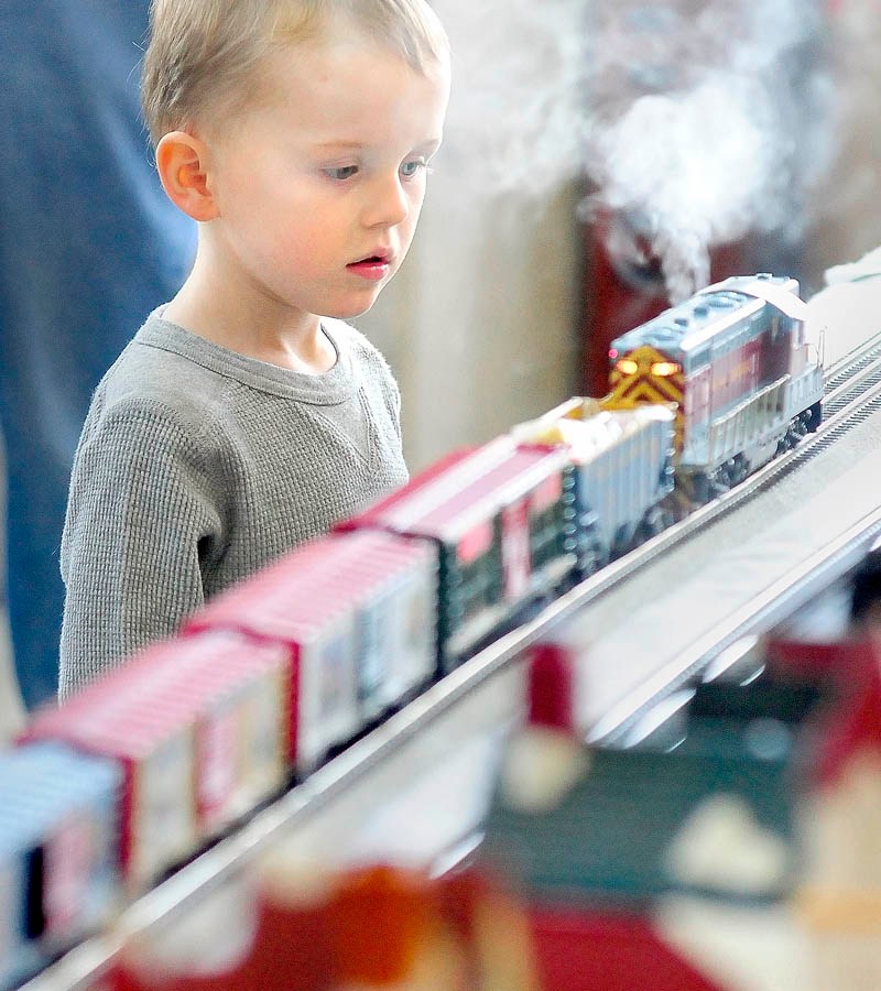 THE POLAR EXPRESS: Ethan Post, 3, of Sidney, watches a smoking locomotive go past him Friday afternoon outside the Maine State Museum in Augusta. The Great Falls Model Railroad Club of Auburn and Augusta’s Maine 3-Railers will display their trains in the Cultural Building atrium again from 10 a.m. to 3 p.m. today. Museum admission […]