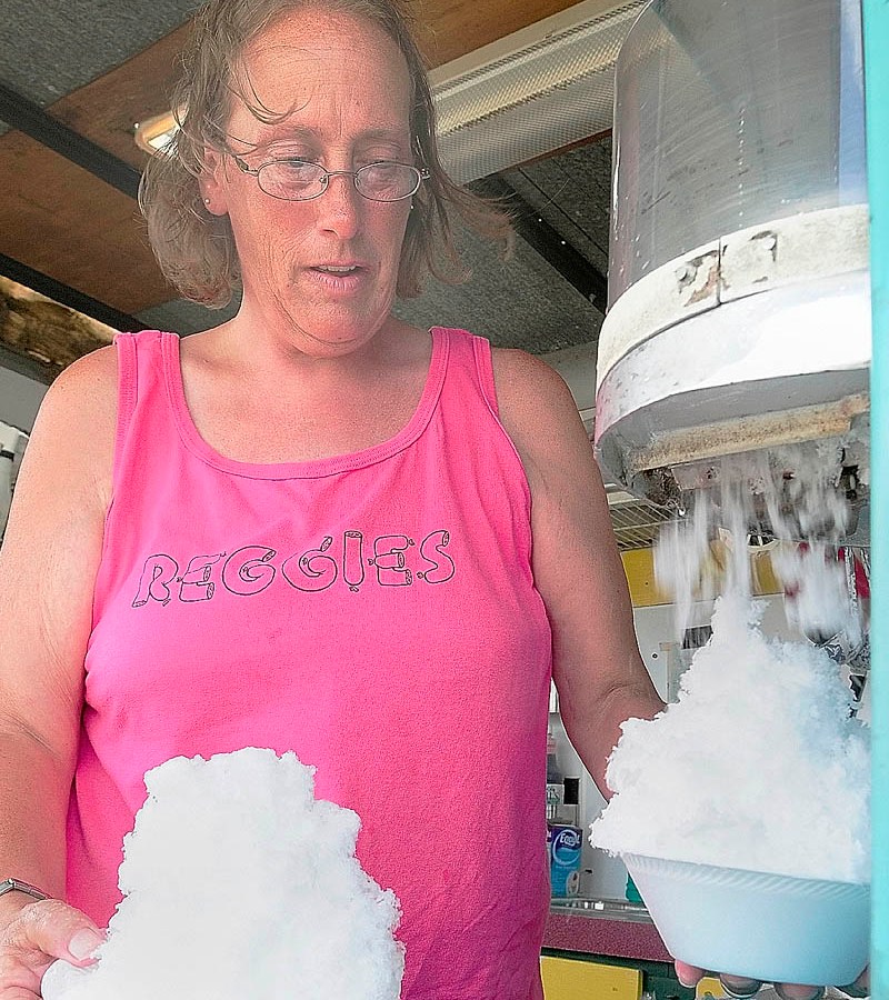 Tammy Brann catches ice flakes as they drop from shaving machine to make frozen treats in the Reggie’s Hawaian Shaved Ice stand at the Pittston Fair on Thursday afternoon. The fair runs through Sunday, and the fairgrounds are on Route 194 near Mast Road. Today’s events include horse pulling, a truck pull, live music, fireworks […]