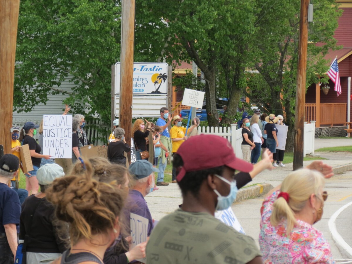 About 70 people participated in the peaceful demonstration Thursday afternoon while a memorial service was held in Minneapolis for George Floyd.