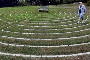 Mike Monahan has installed a complex labyrinth for meditation in his yard where one may find quiet contemplation, or peace when “their dog dies, or husband leaves or the truck blows up.”