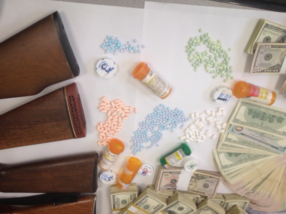Police seized $144,000, marijuana, pills and seven firearms at the home of the alleged drug dealer, Daryl Searles.
