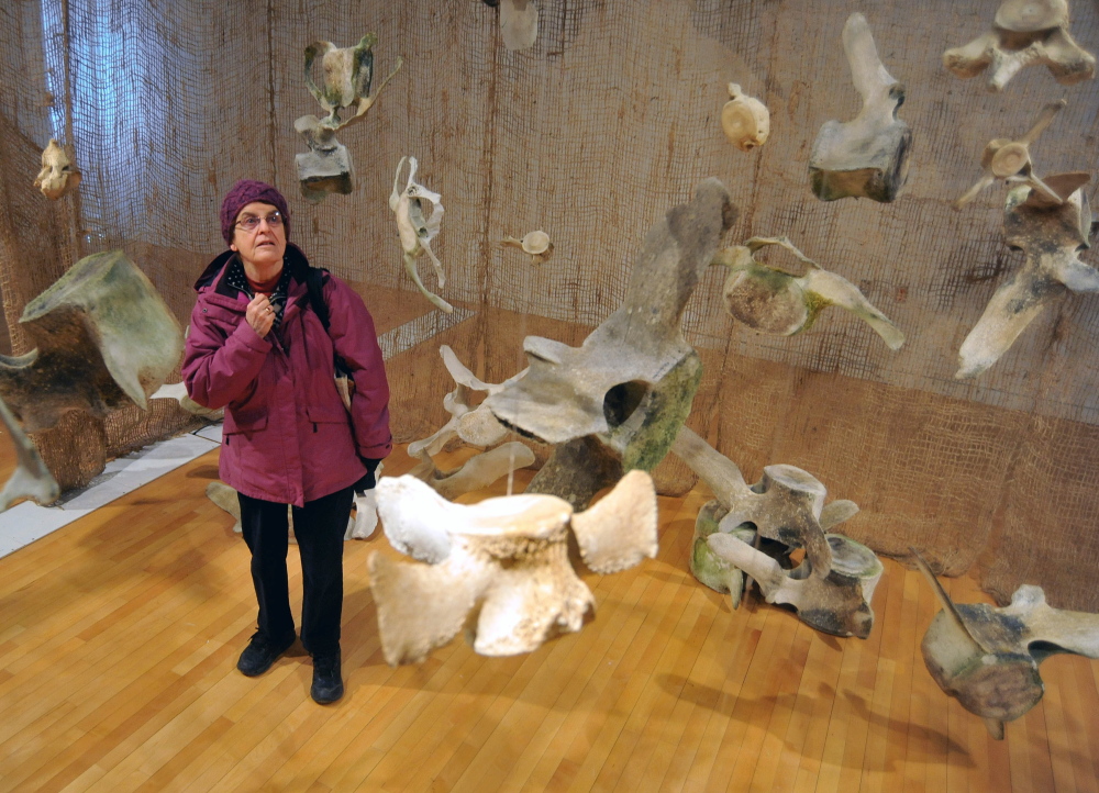 Visitors are encouraged to touch the bones, which will be on display until March.