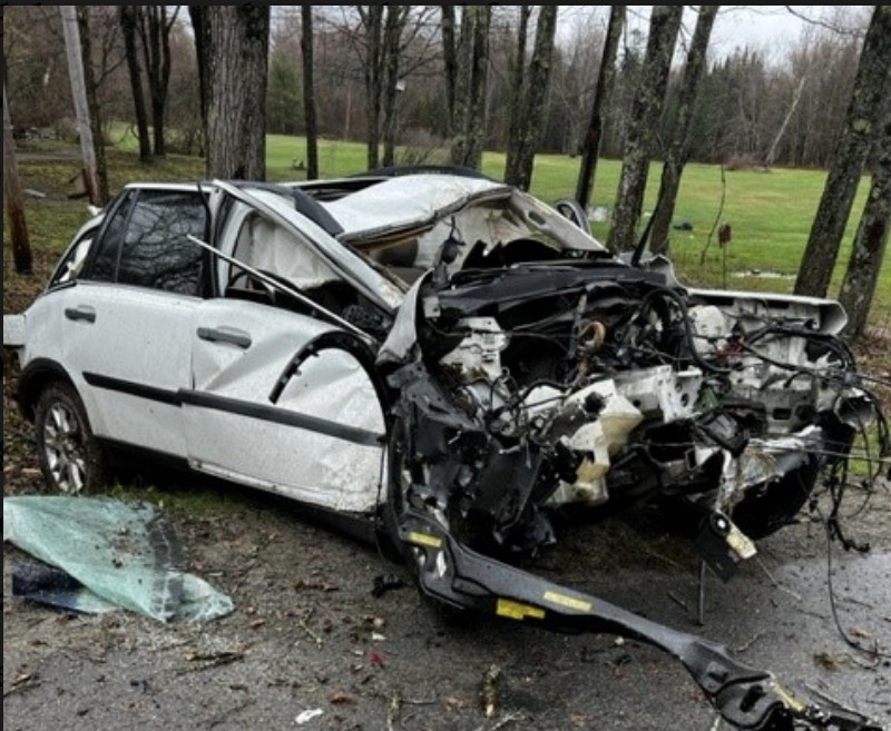 The impact of the crash Monday was so severe that a passenger was ejected from the car and the engine broke loose and landed on the other side of Hill Road.