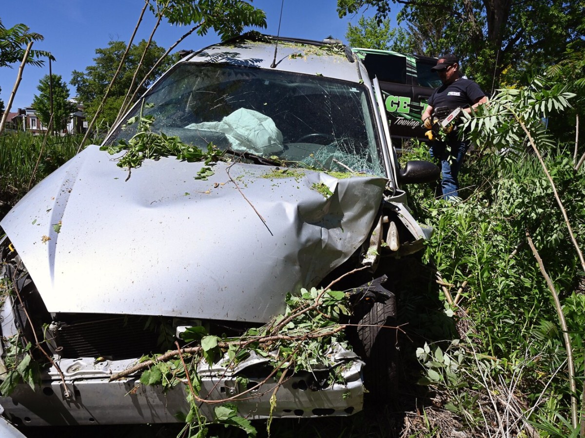 The two-vehicle crash on Route 201 near the Good Will-Hinckley school in Fairfield resulted in one vehicle veering off into the woods.