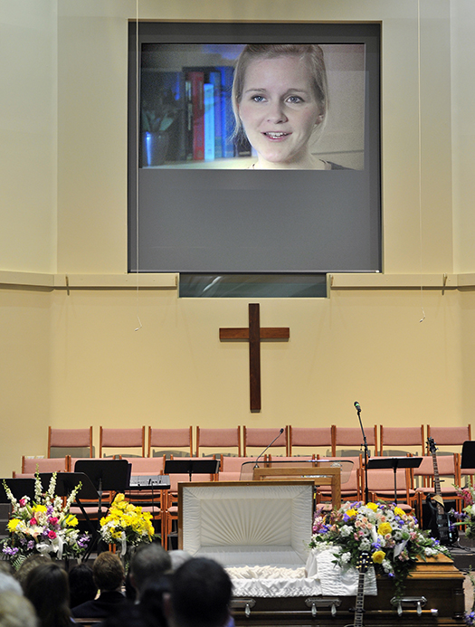About 250 people fill First Baptist Church for a service that included a video of Drew talking about some of the challenges she faced because she had cystic fibrosis.