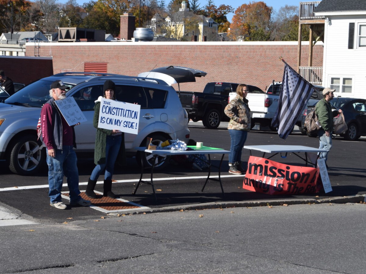 Small group protested vaccine mandate outside Bath shipyard over the weekend