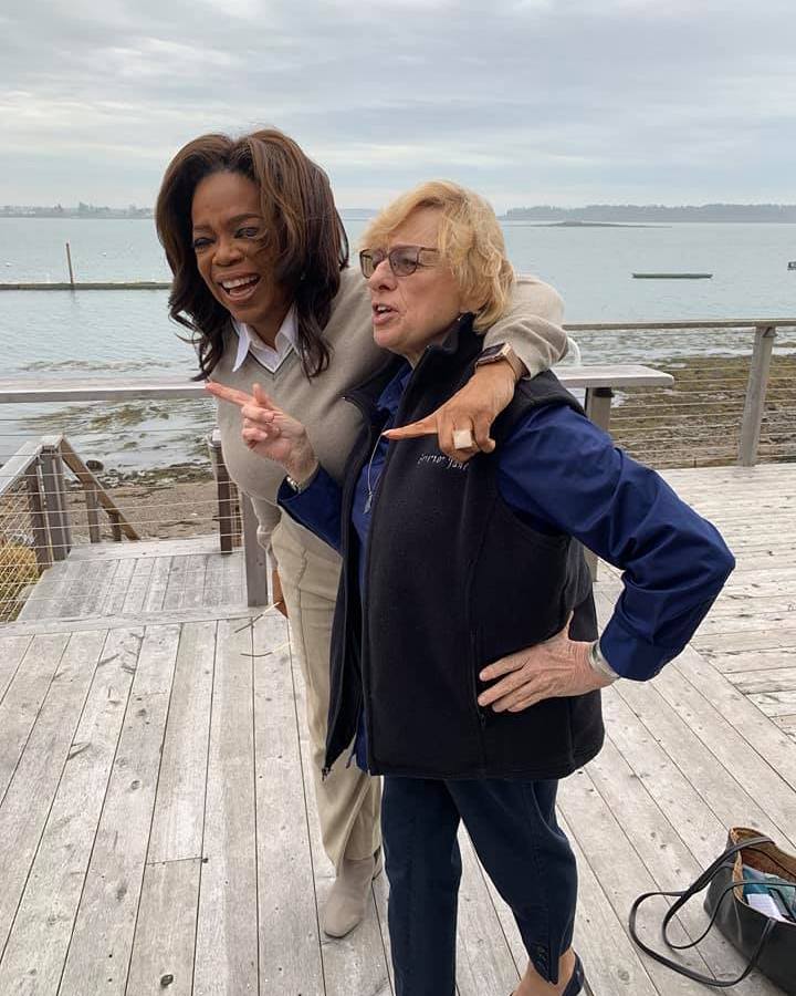 The media mogul filmed a ‘Book Club’ episode in Harpswell with writer Elizabeth Strout, now available for streaming.