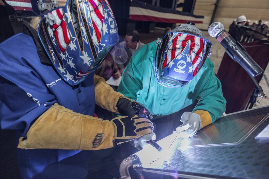 The future USS John Basilone is one of five vessels under construction at the Bath shipyard.