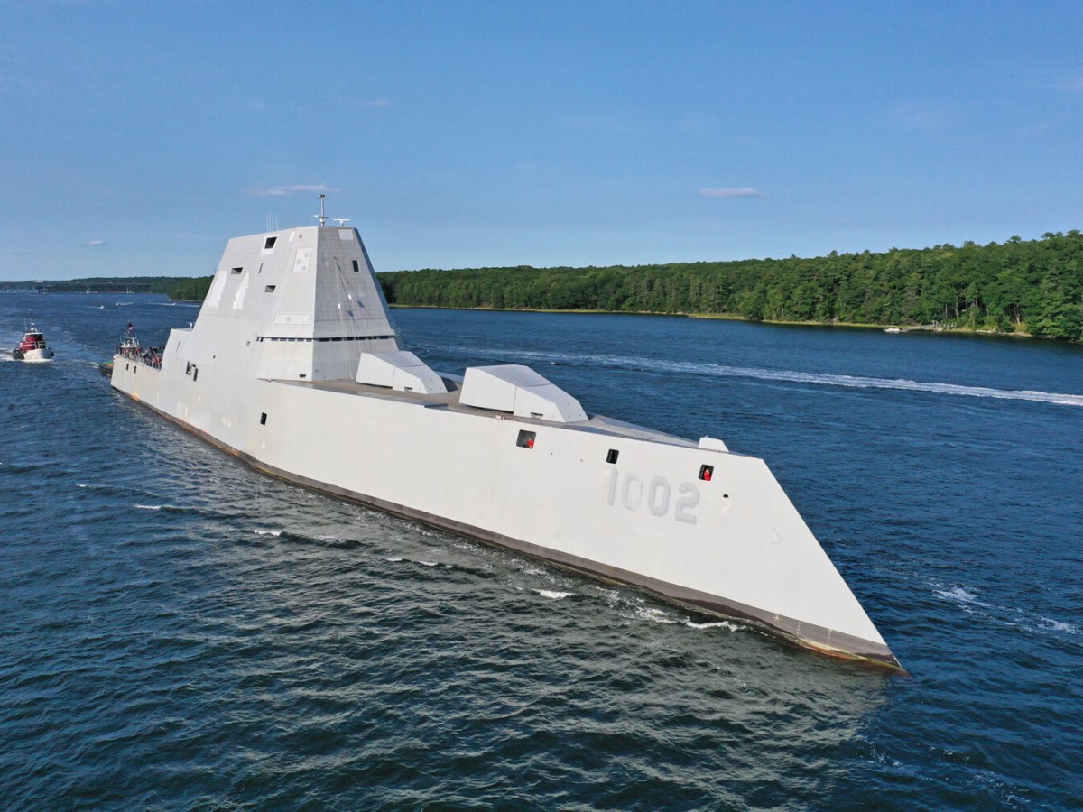 Final Bath-built Zumwalt destroyer departs shipyard for sea trials