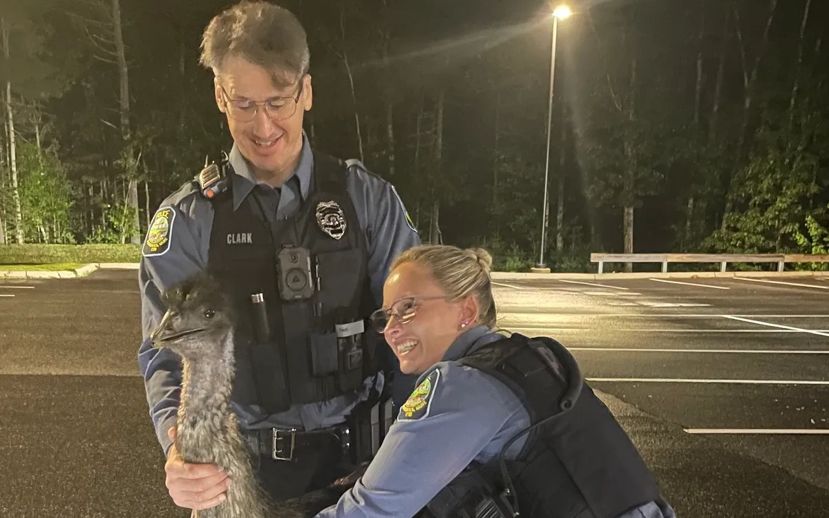 Police had an emu-sing encounter with the large bird Monday night after it escaped into a hospital parking lot.