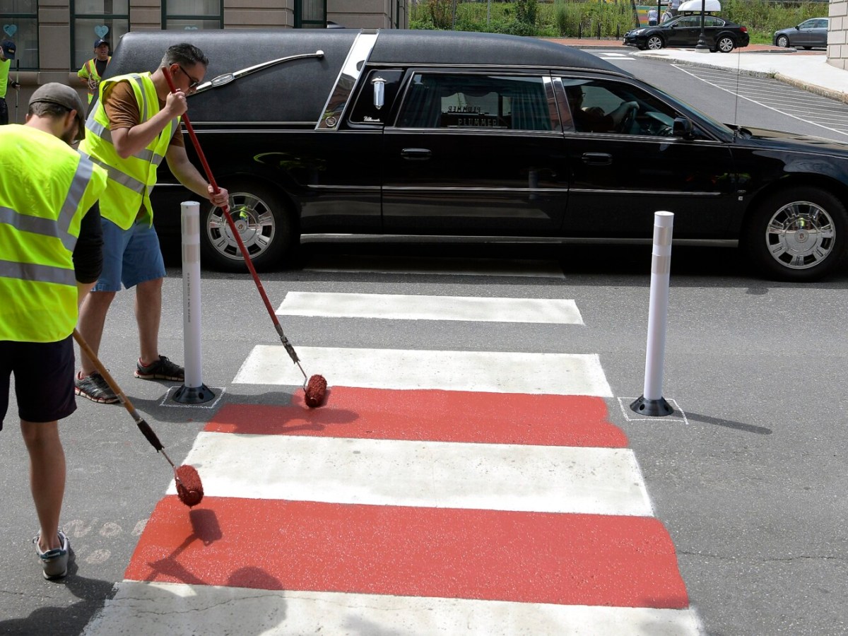 Poles and red paint at Augusta crosswalks aim to boost pedestrian safety