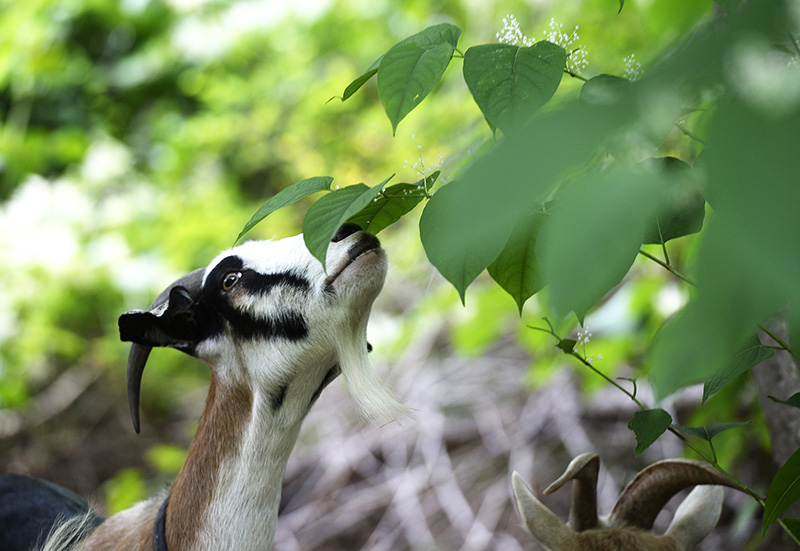 Eight goats from Scapegoats of Kennebunk will spend a week munching on Japanese knotweed in a park beautification project.