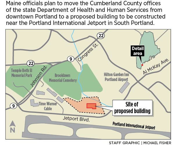 The new site near the Portland Jetport in South Portland would make services inaccessible to many, demonstrators say.