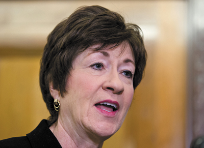 Sen. Susan Collins is part of a bipartisan group of senators who introduced legislation on Monday to give police and federal prosecutors more tools to fight gun trafficking and illegal “straw purchases” of firearms.