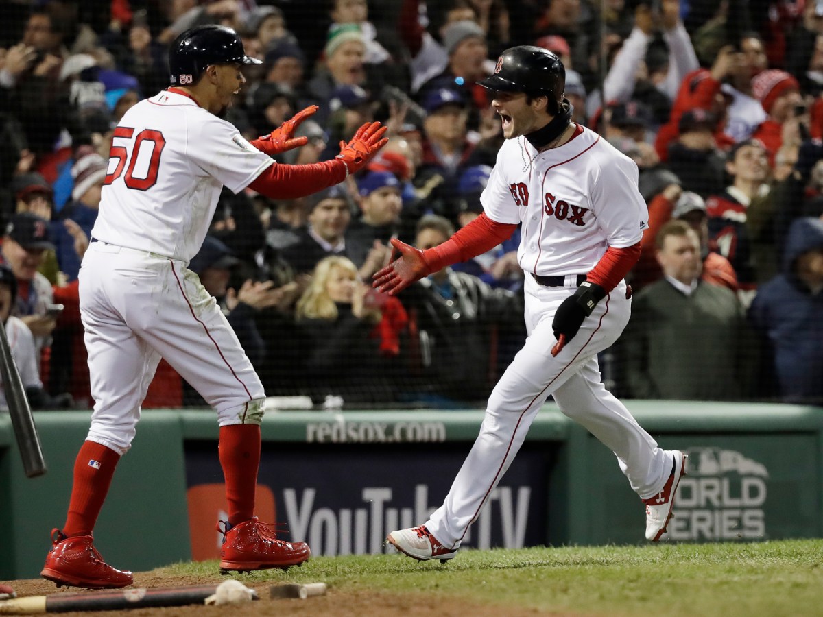 Andrew Benintendi, 24, gets four hits and Rafael Devers, who turns 22 on Wednesday, comes through with an RBI single in an 8-4 victory.